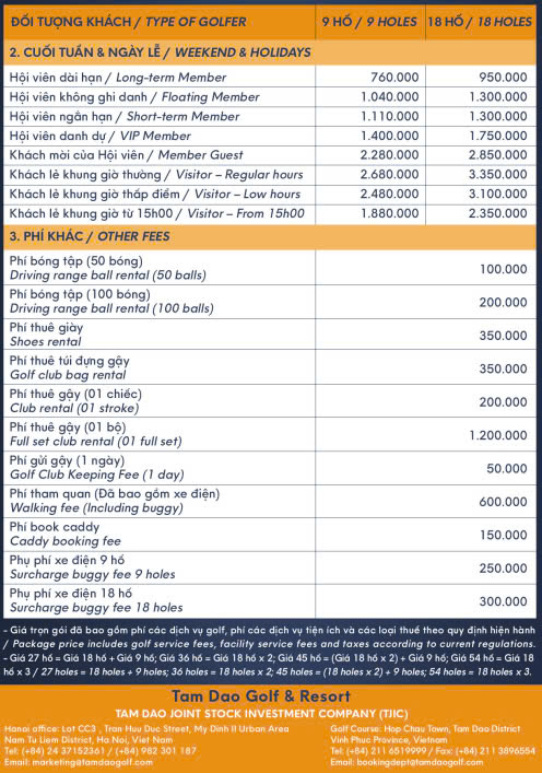 Tam Dao Golf & Resort would like to announce to all our valued members and customers regarding to the schedule and golf fees on Tet Holiday as follows: